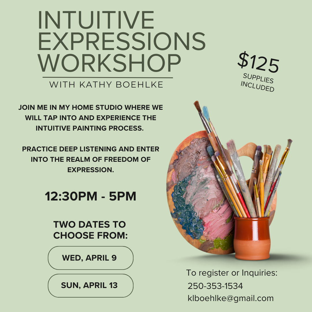 In this half-day workshop, we will connect with our intuitive wisdom and allow inner guidance to come through onto the canvas. What will emerge from the space of inner knowing? What impression will come through our creative spirit into the form of Art?